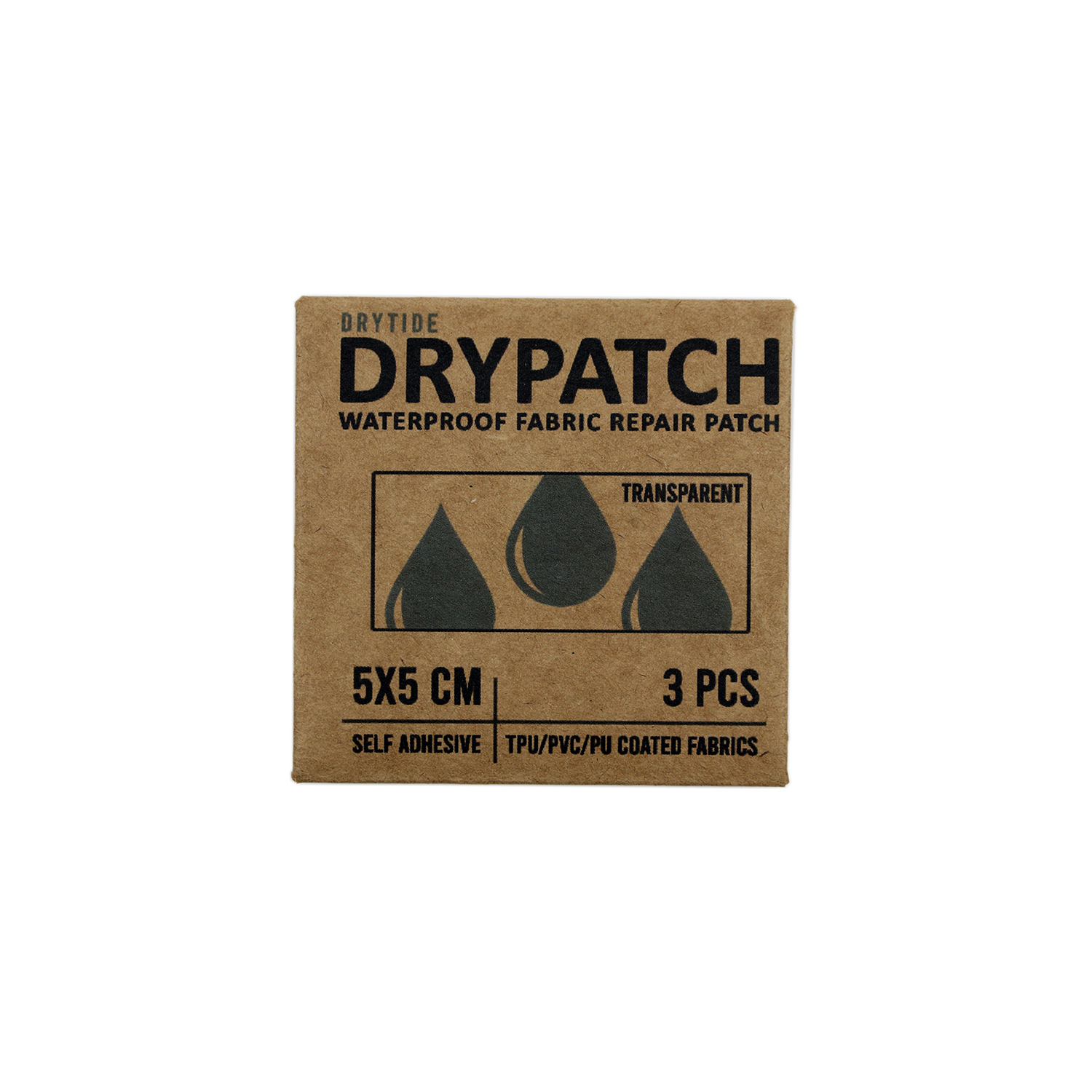 DryTide DryPatch je rešitev za hitro, enostavno in zanesljivo popravilo vodoodpornih torb in nahrbtnikov. Prozoren, samolepilni vodoodporen obliž neopazno zakrpa manjše raztrganine, luknjice in odrgnine na različnih površinah, tako da se ohrani videz in funkcionalnost popravljenih torb. Obliži delujejo na tkaninah s TPU, PVC in PU prevleko.