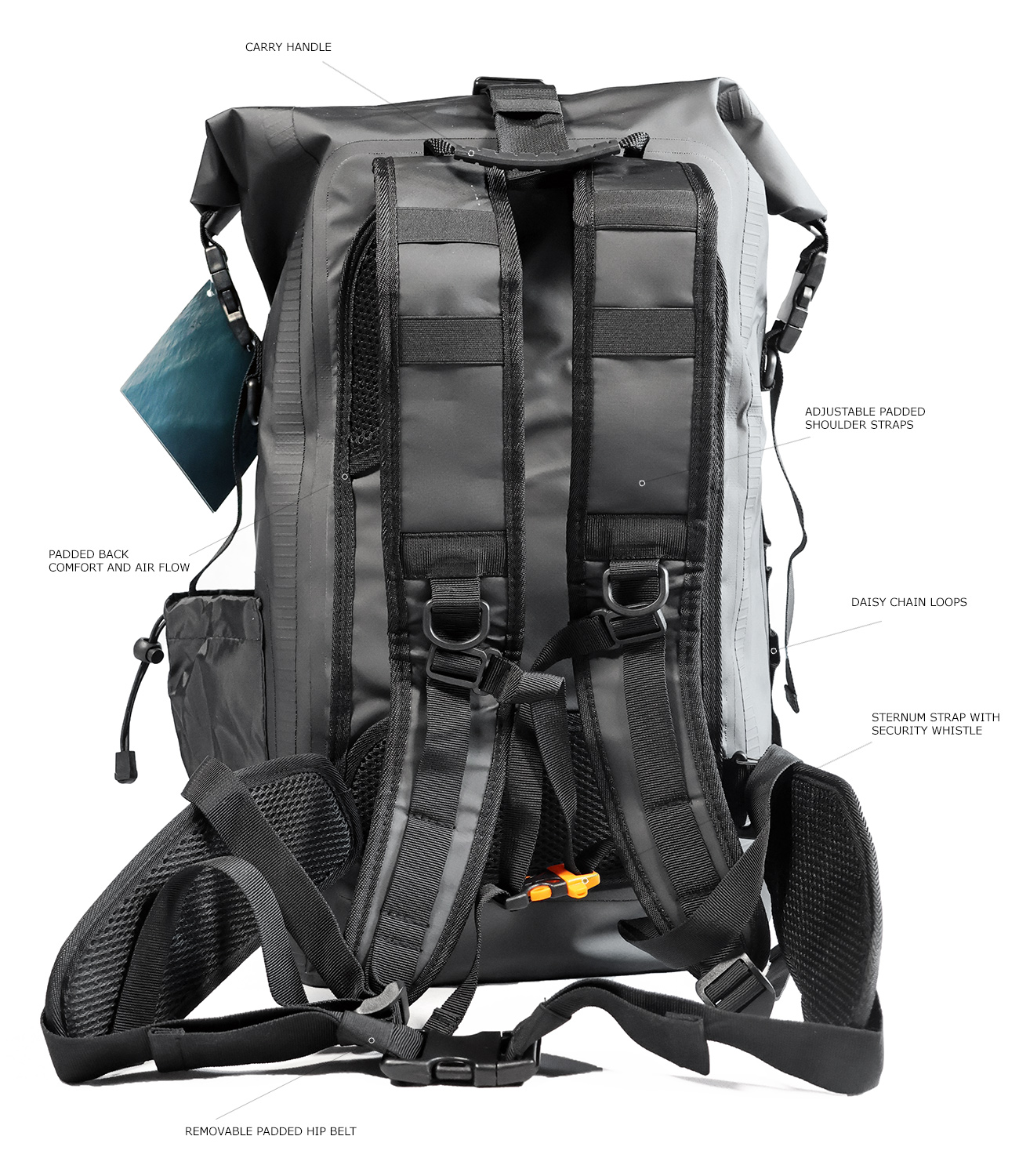 Nahrbtnik je narejen iz trpežne in odporne vodotesne tkanine. Sestavljen je s posebno tehniko varjenja, ki omogoča, da je narejen brez šivanja (šivi preluknjajo tkanino in omogočajo vodi, da pride v notranjost). Vsi spoji na nahrbtniku so tako popolnoma vodotesni, zato je tudi nahrbtnik sam 100% vodotesen in v primeru padca v vodo plava na vodi.
