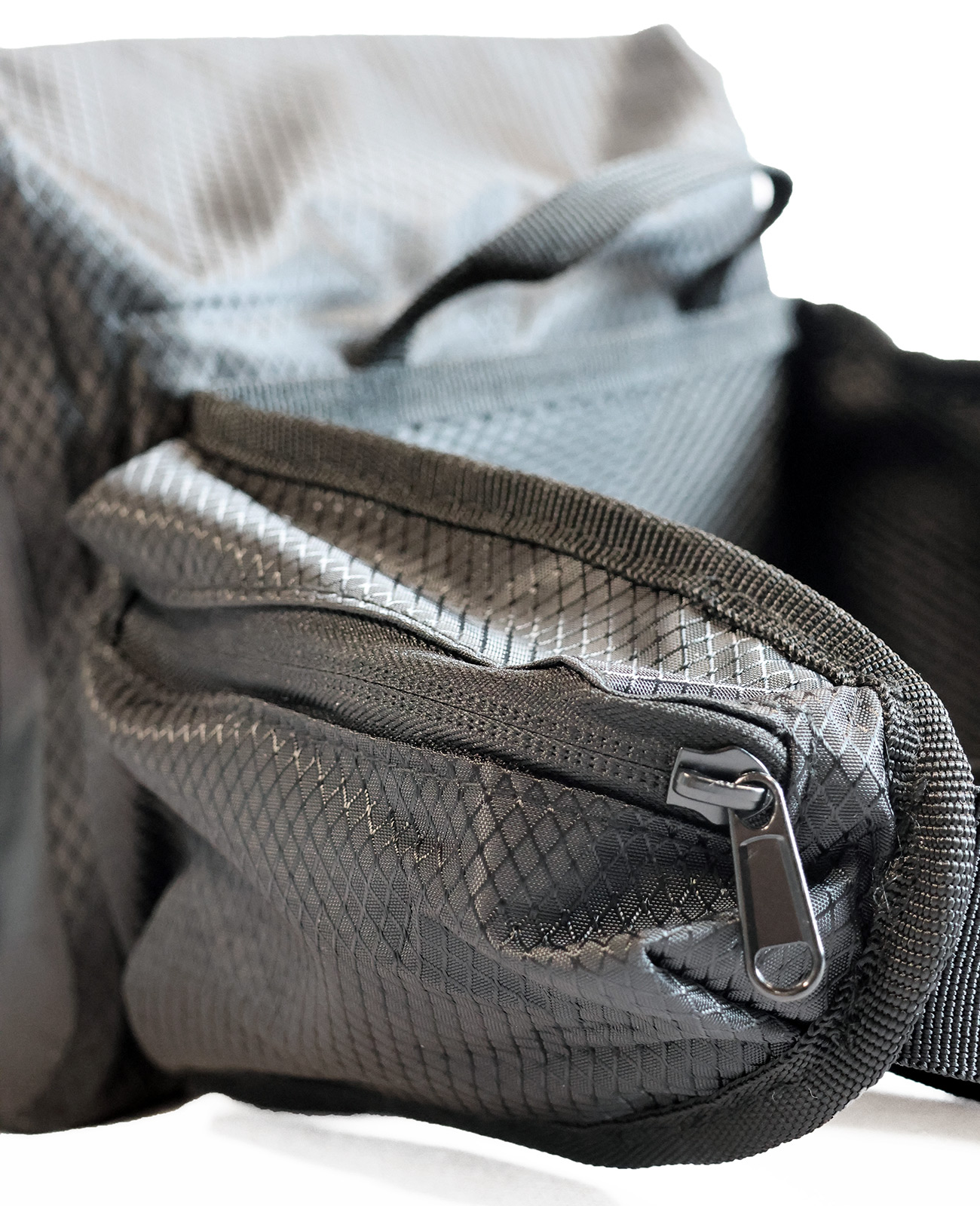 Lahka, a trpežna vodoodporna torbica za pas za prostoročne pustolovščine in enostaven dostop do vaših osebnih stvari. Zložljiva mrežica za steklenico z vodo se pospravi v žep na pasu. Hitro dostopen sprednji žep za manjše predmete ter glavni vodoodporni predal s prostornino 3L. Torbica je opremljena z zaponkami YKK.